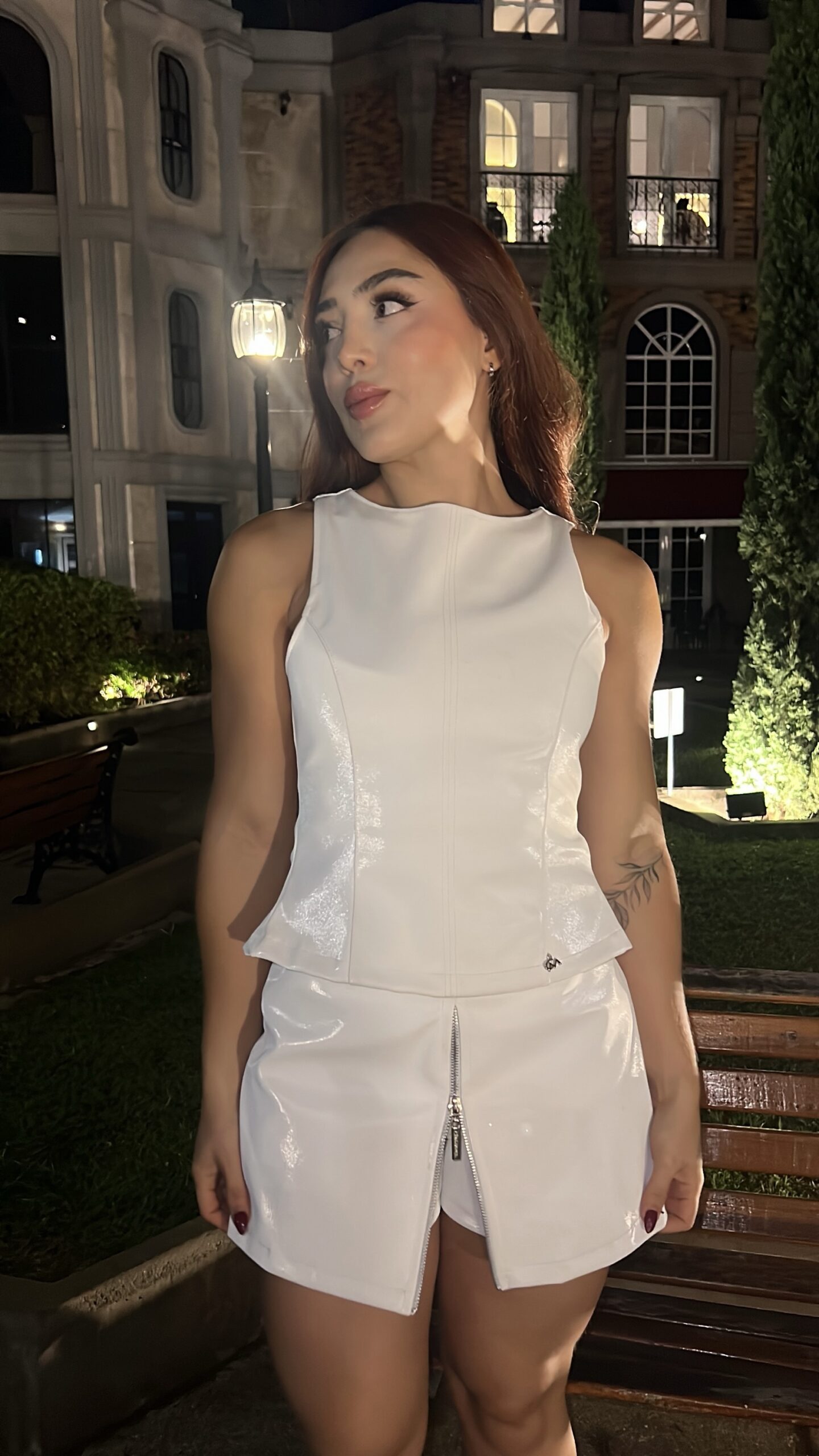 El Set Gales toma su nombre de la princesa de Gales, viste a mujeres reales, modernas, con múltiples facetas. La falda short y la blusa estructurada no solo son versátiles, es una forma de representar a la mujer que se transforma. Este set habla de evolución, de estilo y de romper moldes, sin perder la esencia.